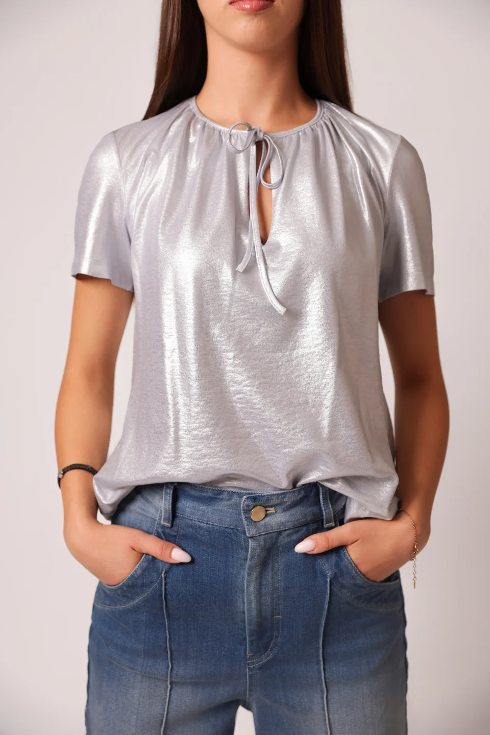 “Silenzio” short sleeve drape neckline