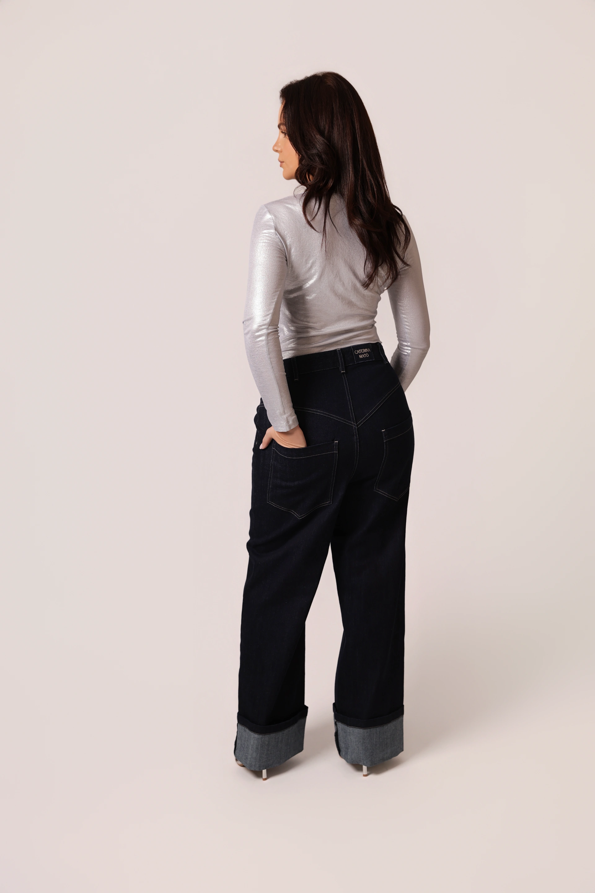 Silver metalizzato cotton blouse with a quiet shine and a clean, sculpted silhouette. Slim fit long sleeves, the front tie neckline introduces a soft, feminine contrast. Minimalism with character.